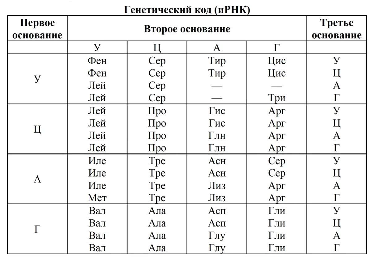 С молекулы иРНК находим последовательность аминокислот в белке по таблице генетического кода: