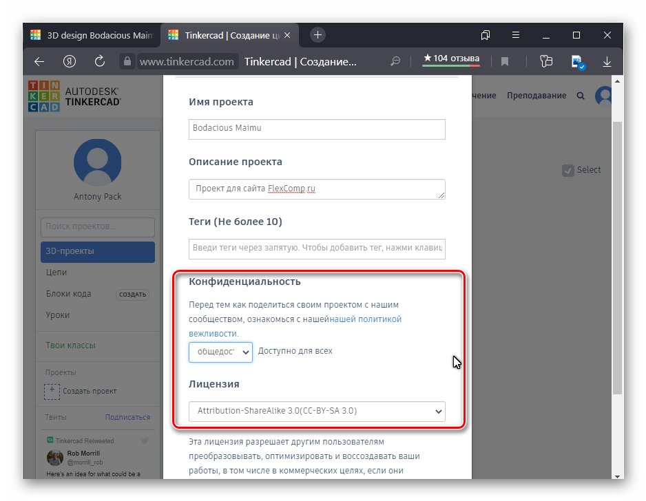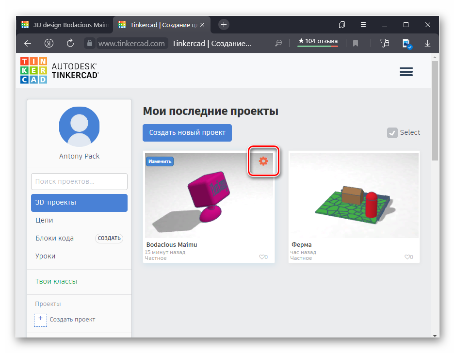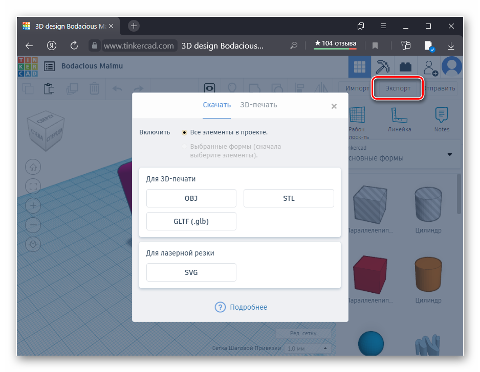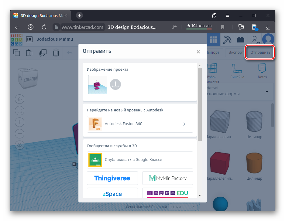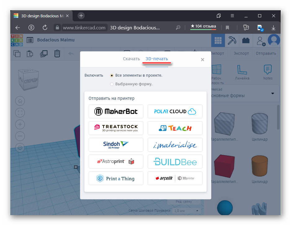 Autodesk 123D Tinkercad – редактор в браузере, который позволяет создать 3D-модель онлайн. После этого она полностью готова к печати.