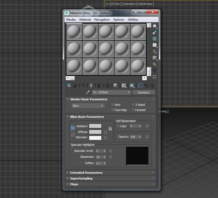 Теперь поработаем с материалом. На основной панели инструментов нажмите на иконку редактора материалов или на клавишу M на клавиатуре.