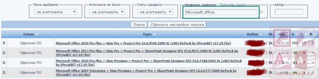 Четвертый способ как и где скачать Microsoft Access бесплатно — это торрент-трекеры. Это более безопасный способ, чем скачивание с обычных сайтов, но в любом случае торрент-трекер должен быть проверенным и не вызывать подозрений. Из практики скажу, что можно доверять таким гигантам как rutracker и nnm-club. Но опять же, вы должны понимать, что скачивание Microsoft Access даже с трекеров не является легальным. Хоть и кажется, что использование торрентов не должно вызывать трудностей, все равно возникает много вопросов, как и где скачать Microsoft Access бесплатно на торренте. Вернемся к началу статьи, я напомню что программа Microsoft Access входит в состав пакета программ Microsoft Office. Многие на торренте ищут не Microsoft Office, а Microsoft Access и, соответственно, мало что находят.