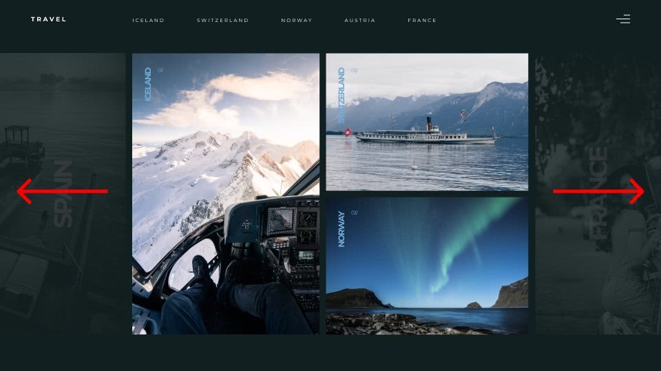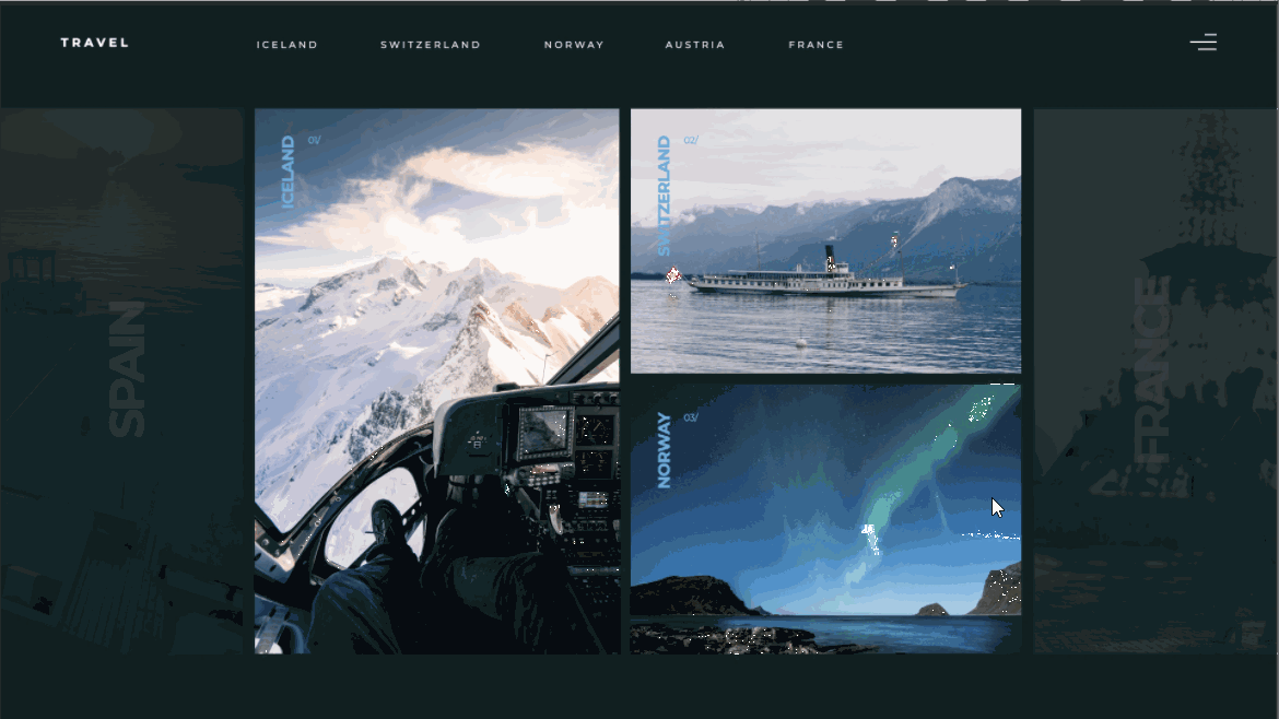 Они анимируются по тому же принципу, что и предыдущие фотографии, — с помощью маски. Анимация фотографий начинается по окончании движения последней фотографии основного блока Norway. Левая фотография двигается справа налево, правая — слева направо.