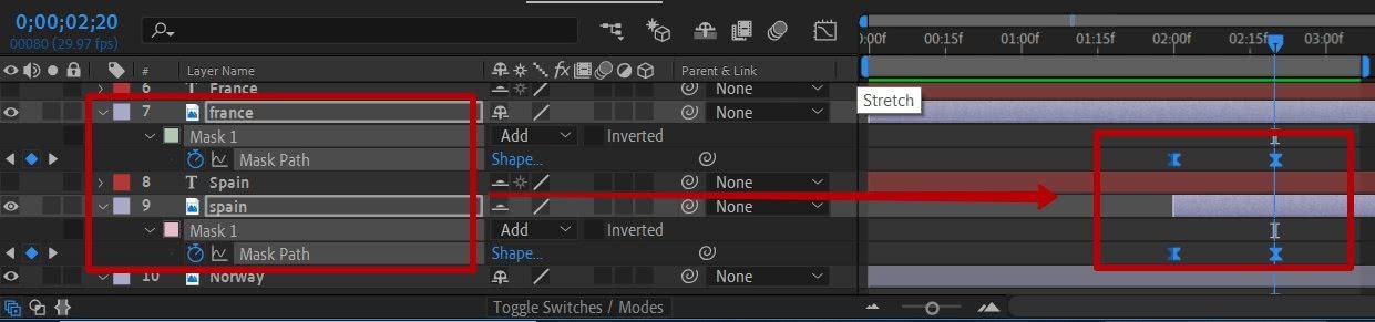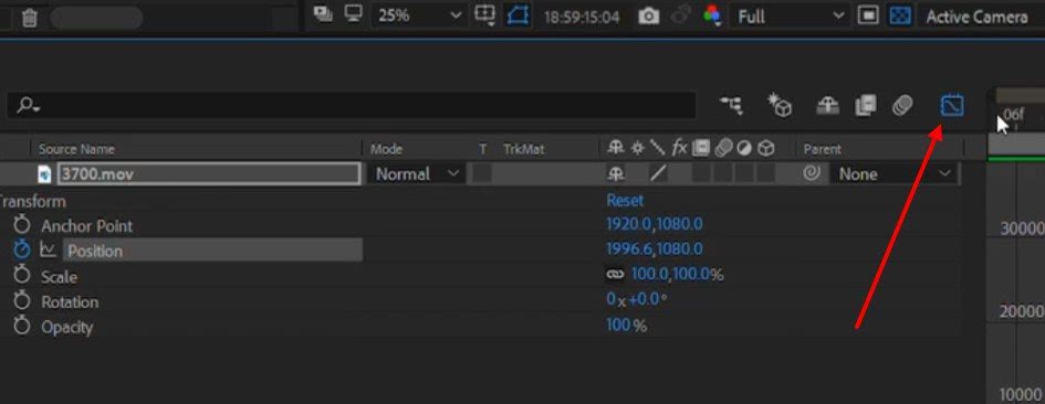 Если вы не переключите этот переключатель, то при изменении Position, или другого выбранного свойства, это свойство изменит своё значение на всем протяжении клипа. То есть, вы останетесь без анимации.