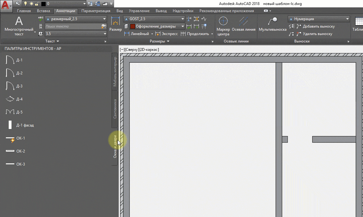 Можно хранить блоки непосредственно в файле шаблона, но я рекомендую более удобный вариант — это размещение ссылок на блоки на инструментальных палитрах. Вам не нужно открывать файлы библиотек блоков, перемещать блоки из файла в файл. Достаточно просто открыть нужную вкладку палитры и выбрать требуемый блок. При данном способе все блоки располагаются у вас под рукой, это очень удобно.