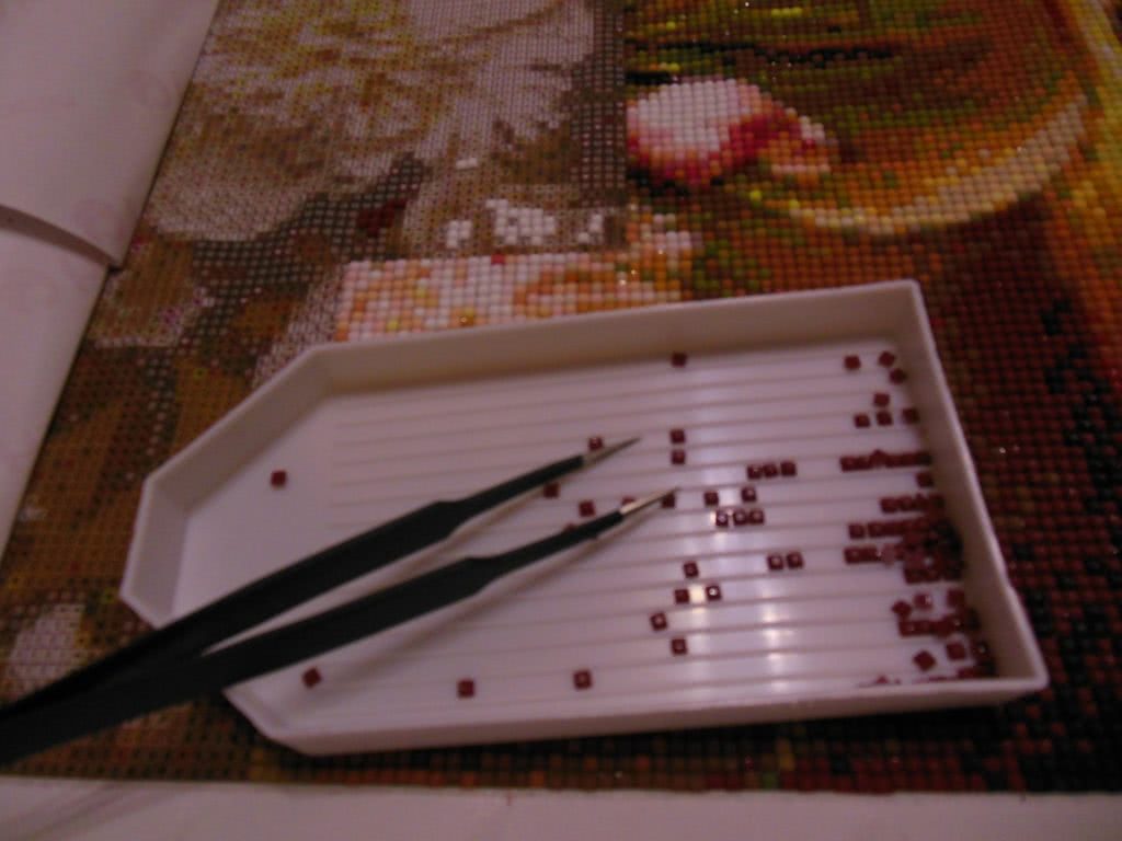 Удобнее работать с кристаллами, когда они находятся не в пакетиках, а в отдельных ячейках, поэтому целесообразнее будет до начала работы переместить кристаллы, например, в ячейки для бисера.