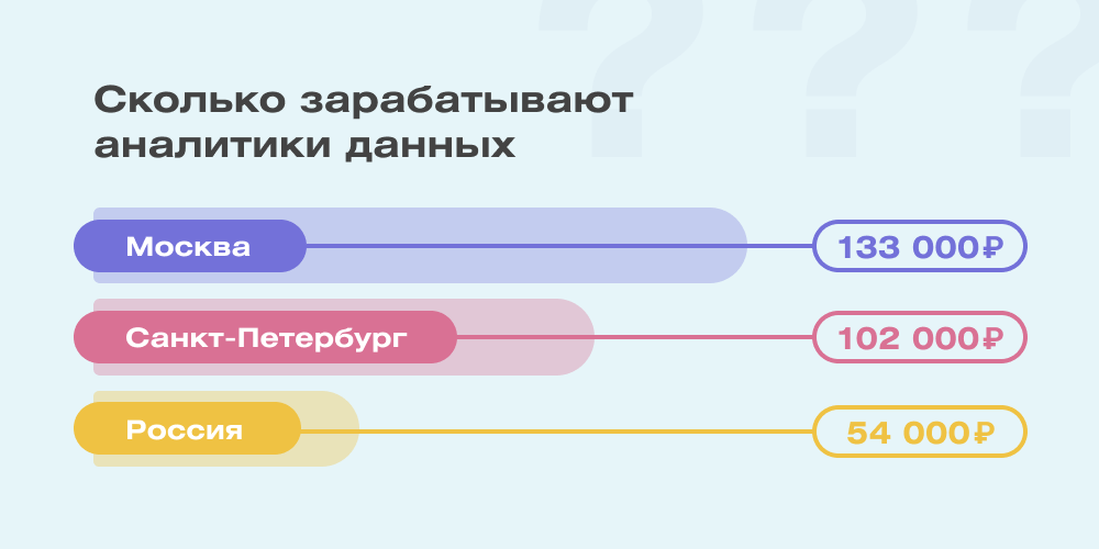 Зарплата аналитика данных зависит от вашего опыта, объема работы и ее места. В России новичкам платят в среднем от 65 тысяч рублей в месяц. Опытные специалисты могут рассчитывать на сумму от 115 до 275 тысяч рублей.