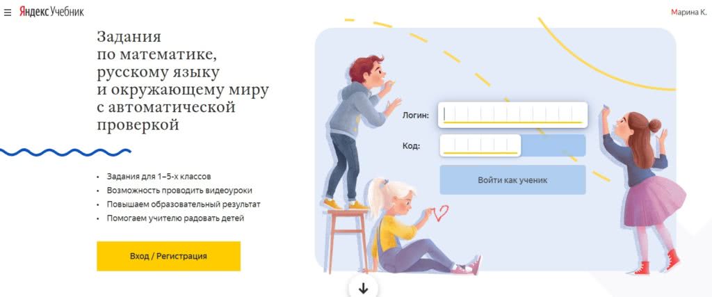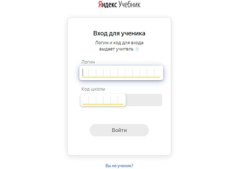 Вход ученика на Яндекс.Учебник по логину и коду