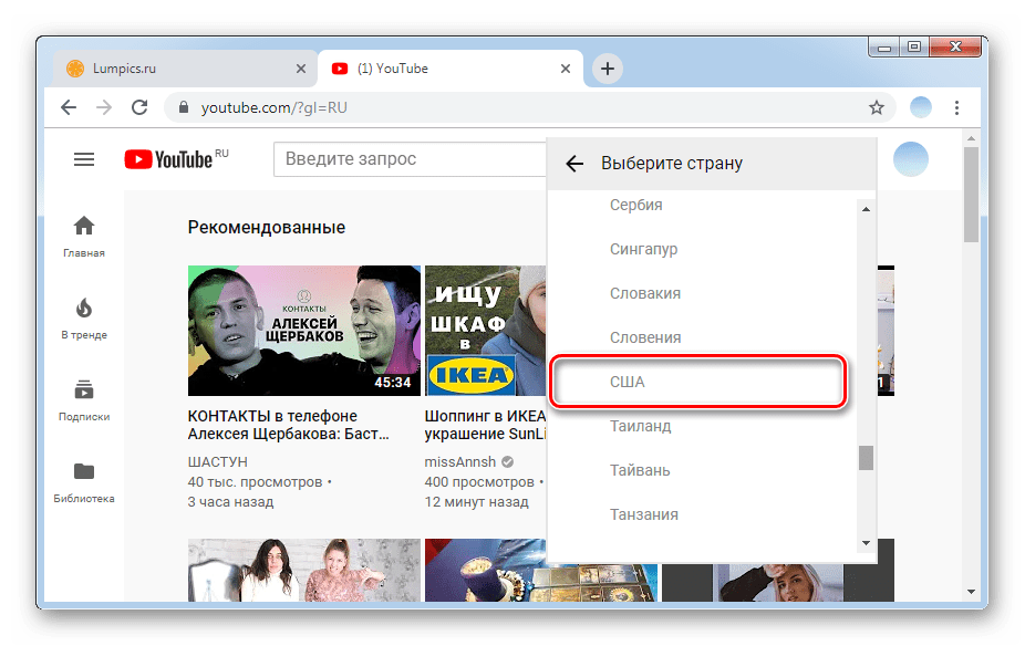 Смотрим Ютуб для США