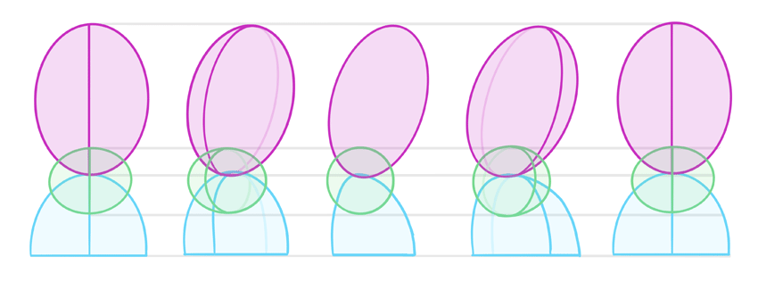 - Голову строят на основе соединенных между собой круга и овала, где круг является основой для верхней, а овал – для лицевой частей головы.