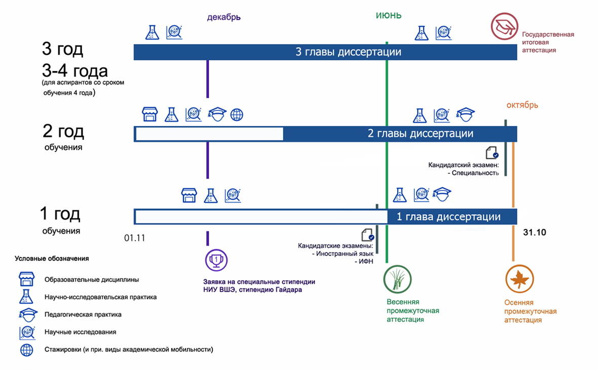 Очная аспирантура подойдет выпускникам, которые хотят полностью посвятить себя научно-исследовательской деятельности. Она предполагает: