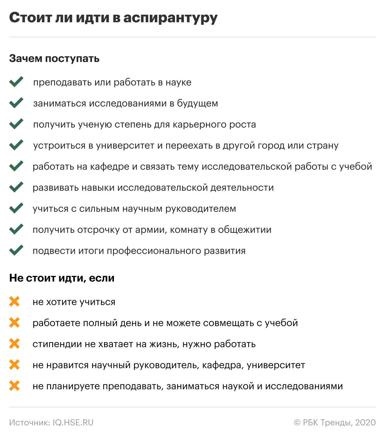 Определенные выгоды. Одна из причин, по которой 29% мужчин поступили в аспирантуру — отсрочка от армии. Из-за места в общежитии поступили 7% опрошенных. Люди идут в аспирантуру, чтобы получить ученую степень и работу с хорошей зарплатой. При этом многие делают особую ставку на бренд вуза. Другим ученая степень нужна как факт, безотносительно к содержанию обучения.