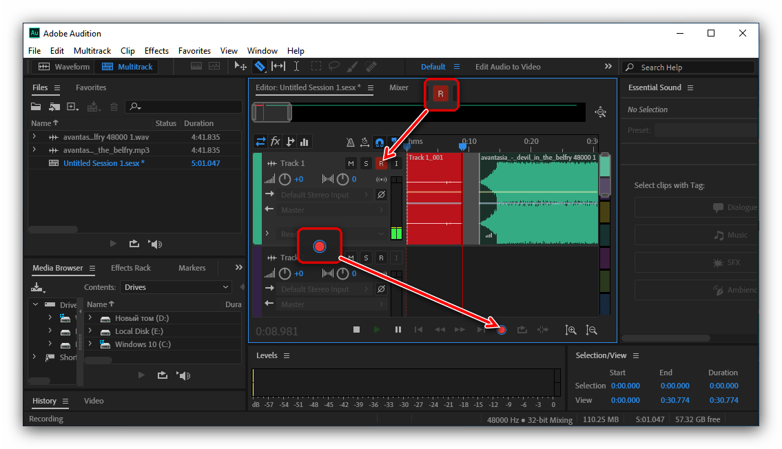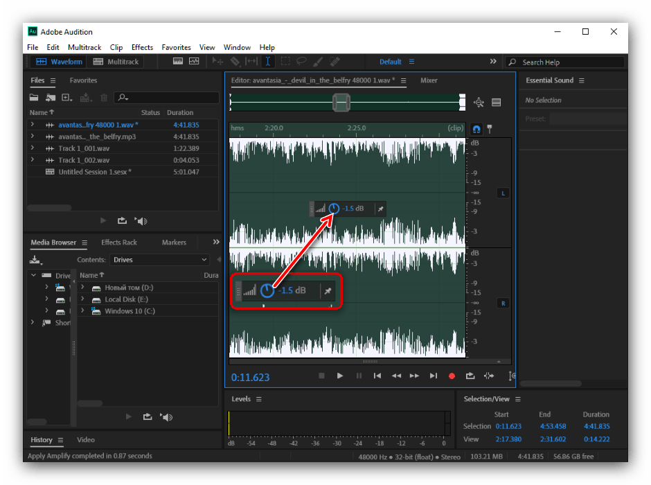 Также с помощью Адоби Аудишн можно поправить голосовую дорожку, например, если вокал слышен нечётко.