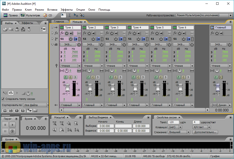В Adobe Audition можно заниматься сведением треков, используя для этого многотрековый секвестор. Радует то, что, сколько бы песен вы не склеили, качество звука остается на высоте. Эта программа для создания музыки позволяет настраивать битрейт на произведениях и настраивать другие различные параметры.