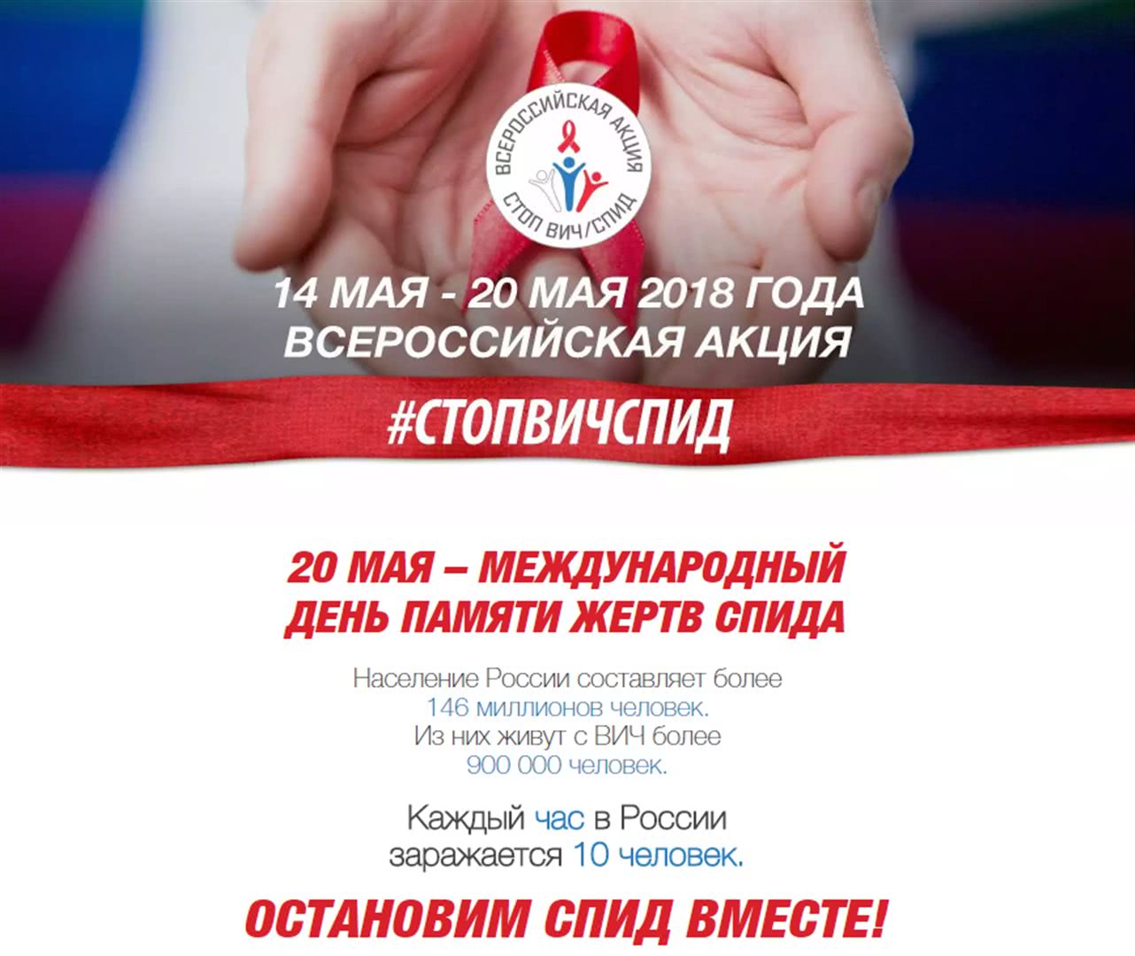 С 14 по 19 мая 2019 года проводится Всероссийская акция «Стоп ВИЧ/СПИД», приуроченная к Международному Дню памяти людей, умерших от СПИДа.