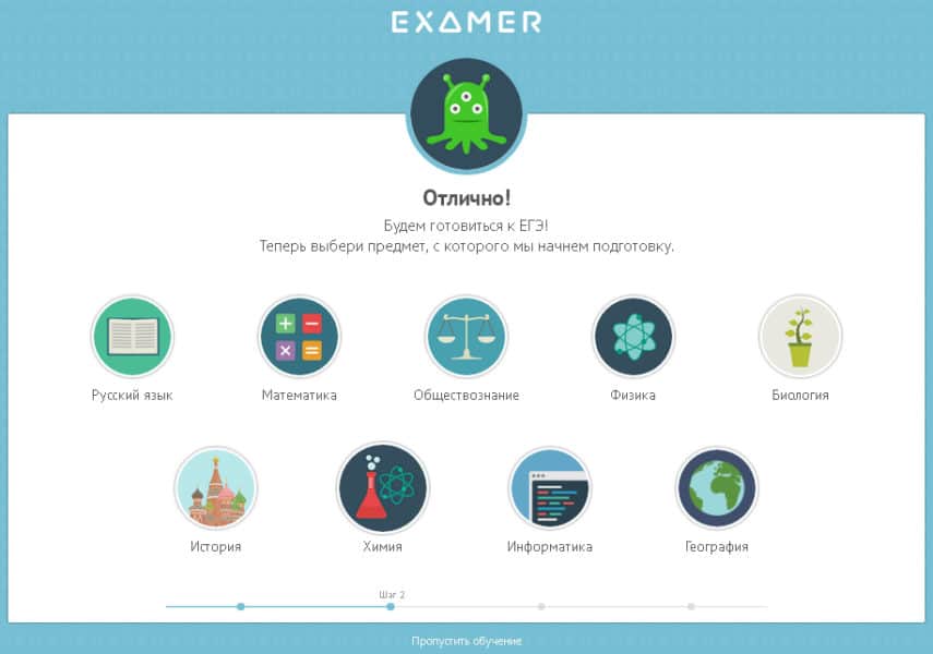Здесь список обучаемых предметов более широкий, чем в Tetrika. К четырем предметам, указанным выше, добавляются: история, обществознание, информатика, химия, биология.