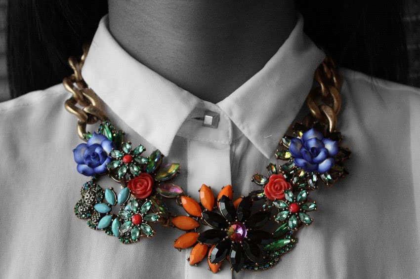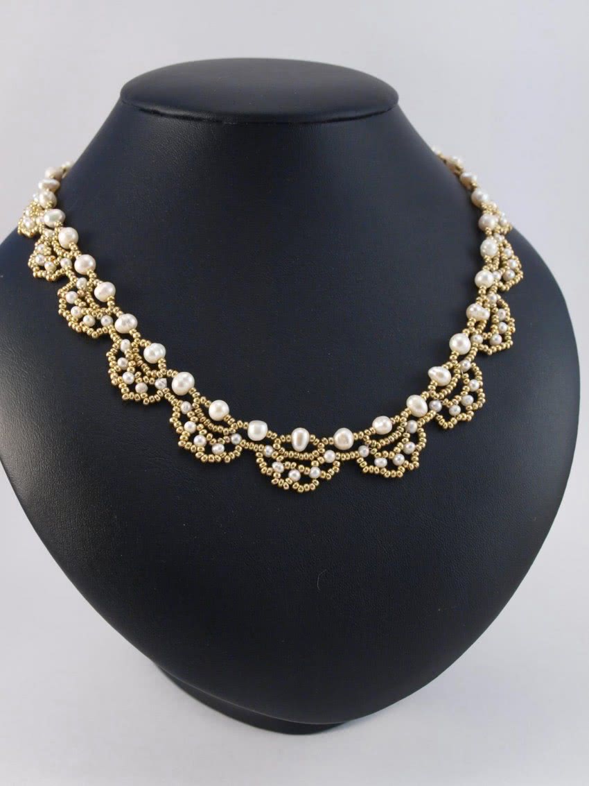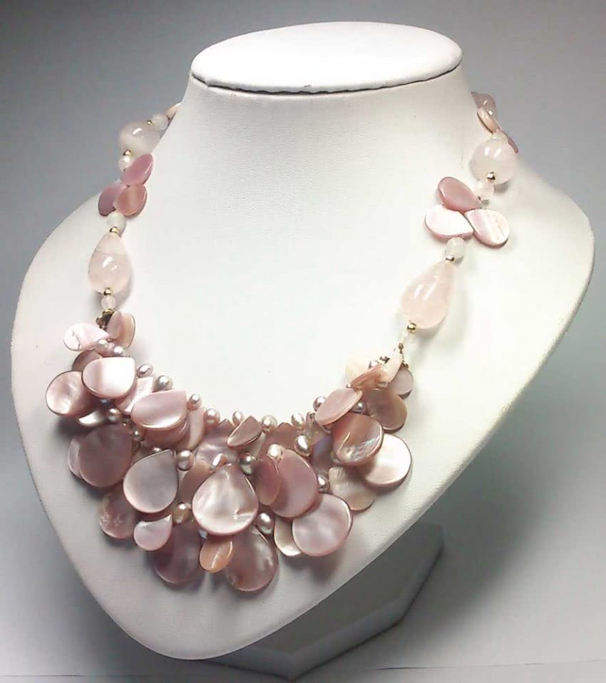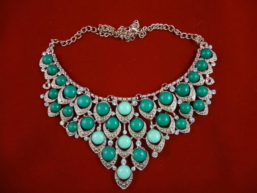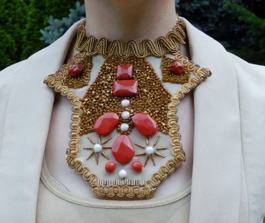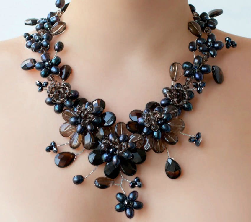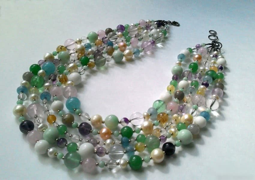 Колье подобного дизайна достаточно универсальная вещь которая хорошо сочетается с разной одеждой.