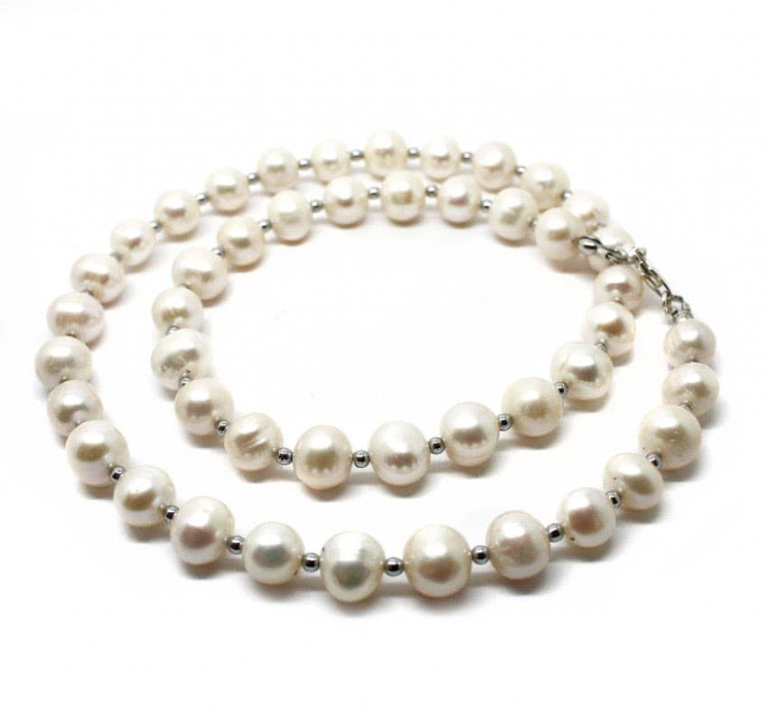 Для создания оригинального колье своими руками понадобится сетка белого и черного цвета, искусственный жемчуг двух цветов, бусины Рондель, мононить, подвеска для колье, бейл (декоративное крепление частей украшения).