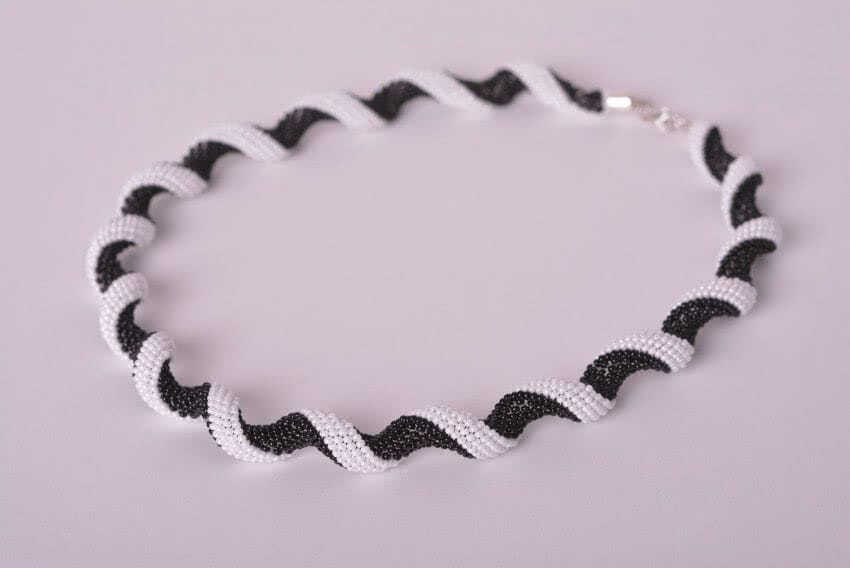- На заключительном этапе изготовления украшения своими руками закрепите застежку на колье.