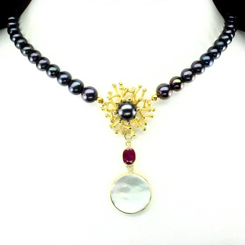 В качестве завершающего штриха к центру колье можно прикрепить подвеску с крупным камнем.