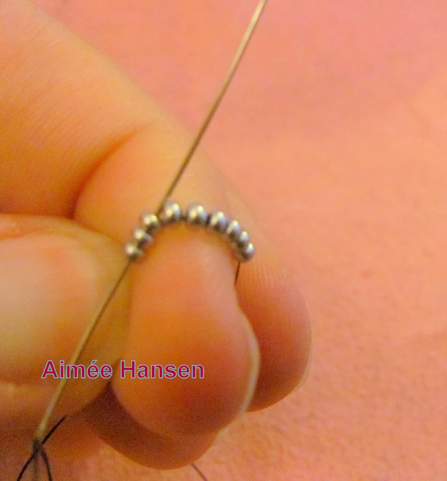 - на каждый отрезок наберите бисер примерно в 20-25 см;