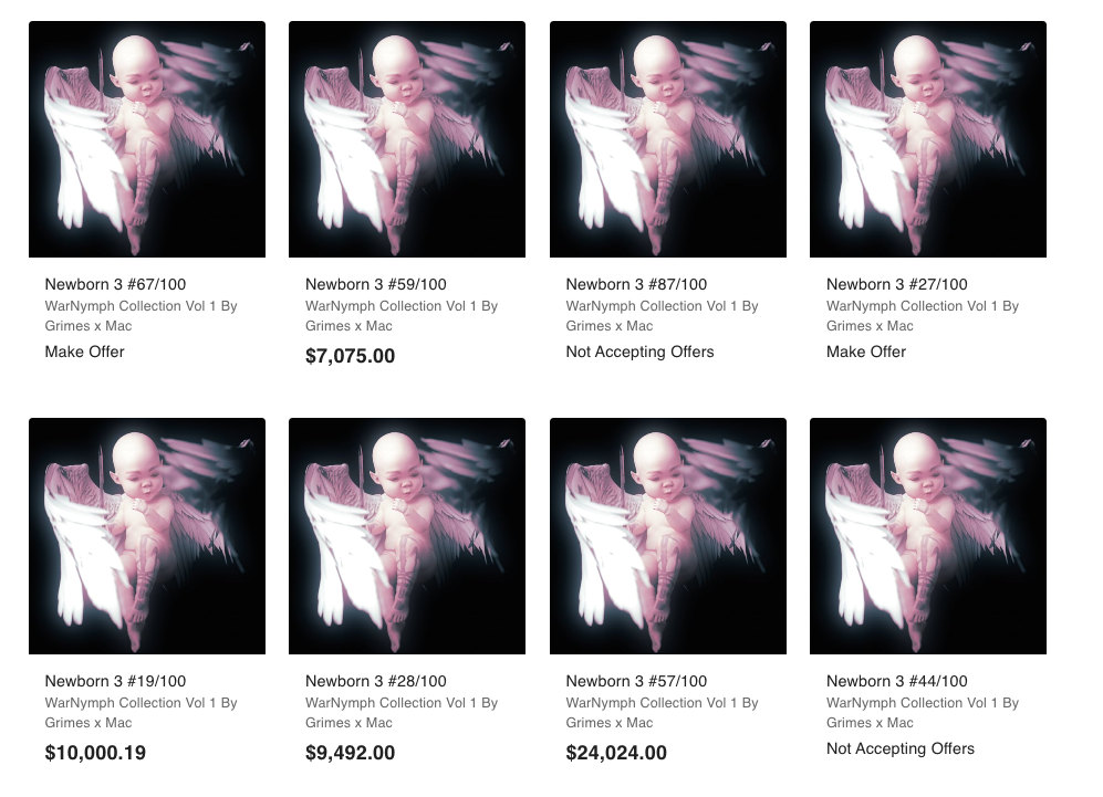 Лимитированные тираж серии «Newborn» («Новорожденный») из 100 NFT, выполненной Grimes. Источник