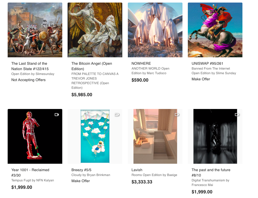 Примеры картин и GIF, которые продаются на Nifty Gateway. Источник