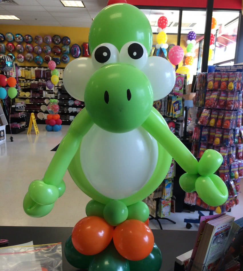 Что нужно: по 5 белых и желтых шариков, 1 красный, 3 зеленых шарика для твистинга, 4 зеленых воздушных шарика.