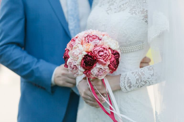 - Долговечность. Рукотворный аксессуар не завянет и не потеряет внешний вид на протяжении всего торжества. Его можно сохранить на память, как оберег для молодой семьи – на Руси издавна существовала традиция использовать в этом качестве свадебные букеты.