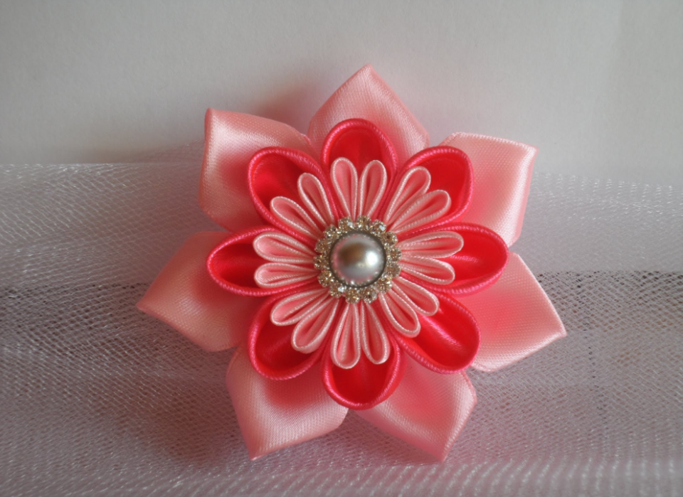 Цветок канзаши из широкой ленты