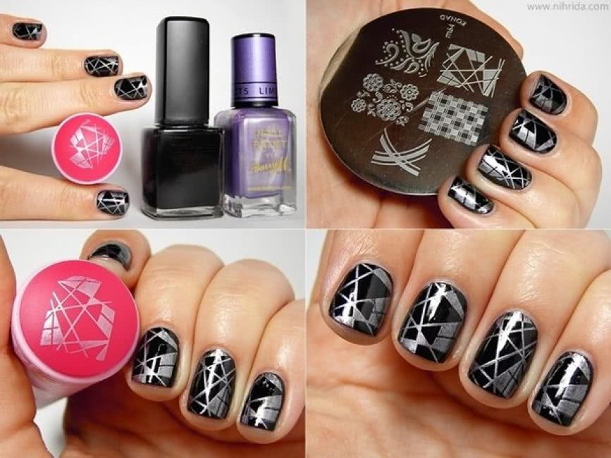 Такой маникюр также считается геометрическим. Однако если все же выбрано такое направление, то полоски должны быть контрастными. Лучше всего, если рисунок будет сделан черным и белым лаком. Данное покрытие поможет скрыть имеющиеся дефекты на ногтях. К тому же оно украсит небольшие ногти.