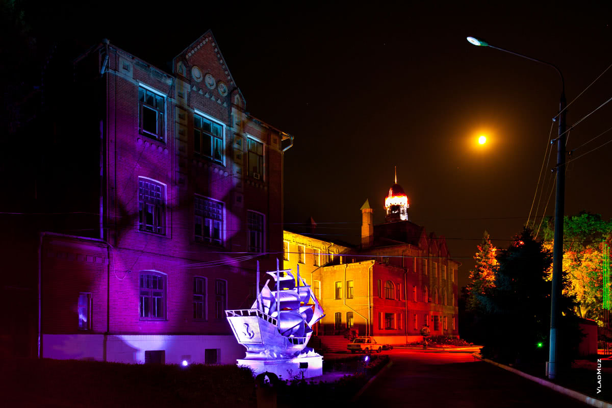 Фото учебного корпуса №2 ДонГАУ в свете ночных огней(полноразмерное фото в HD качестве с разрешением 2370 на 3550 пикселей можно открыть в новом окне)