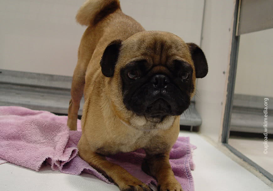 Популярное цирковое упражнение, когда собака закрывает морду передней лапой по команде «стыдно». Для обучения потребуется угощение и скотч. Закрепить лакомство животному на брови, как можно ближе к глазу. Как только вы заметите, как питомец пытается убрать инородный предмет, громко сказать ключевое слово, дать угощение.