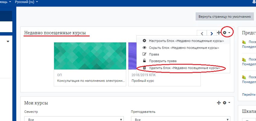 Чтобы вернуть отображение всех курсов, пройдите на страницу личного кабинета и в блоке «Мои курсы», в выпадающем поле «Семестр» выберите «Все». Обновите страницу.
