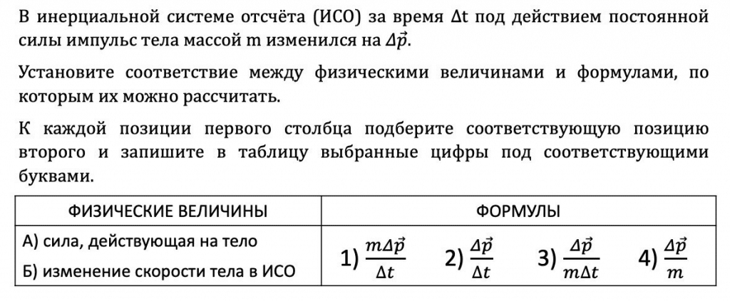 В этих заданиях необходимо установить соответствие между графиками и физическими величинами, либо между формулами и физическими величинами. Один балл можно получить при установлении одного правильного соответствия.