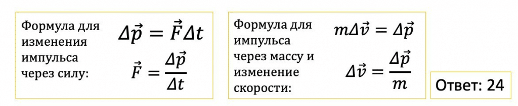 Для выполнения этого задания нужно вспомнить формулу для изменения импульса. С одной стороны, это изменение можно записать через силу и время, а с другой – через массу и изменение скорости.