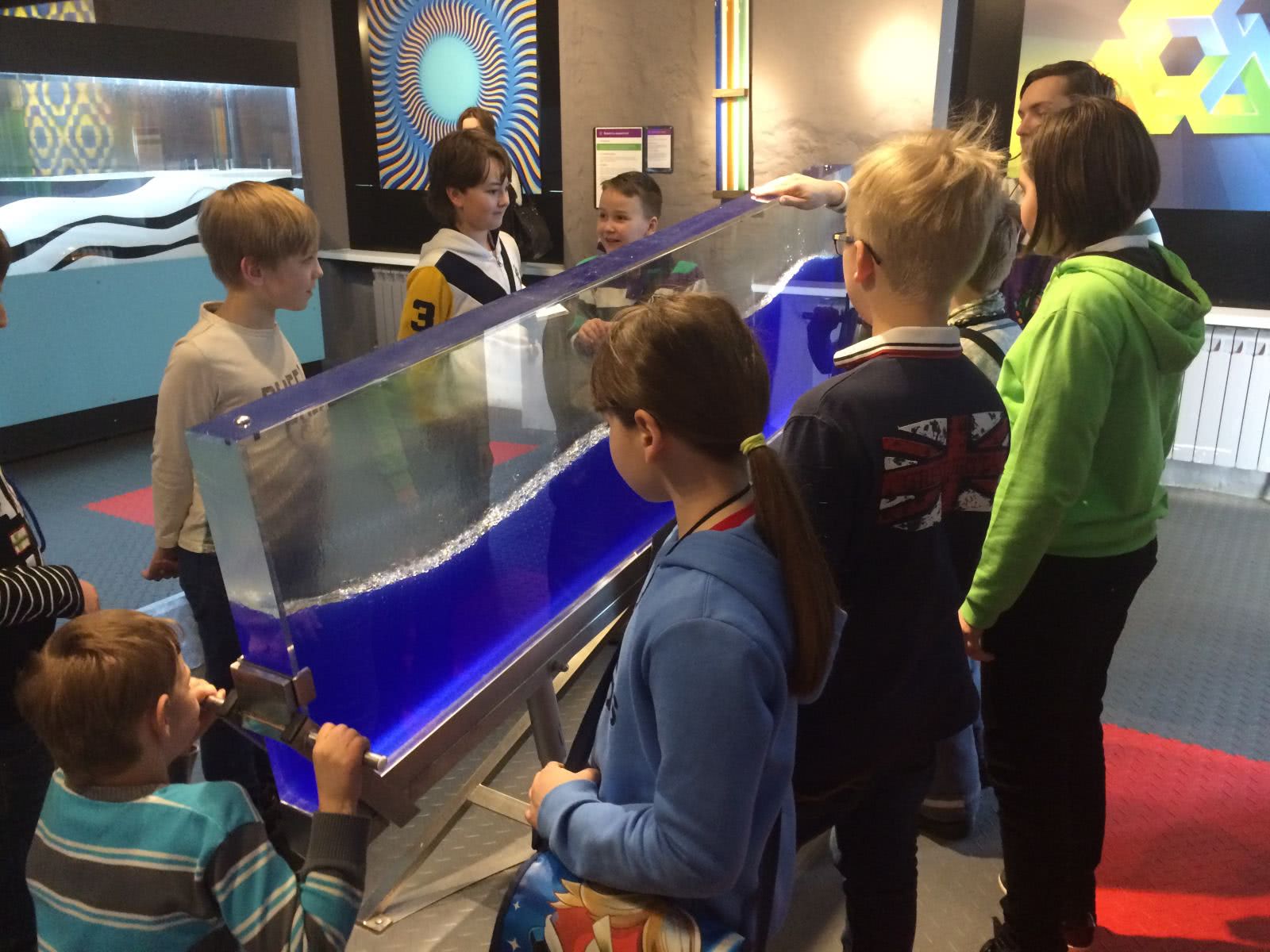 - Водная комната, оснащенная интерактивной инсталляцией. Опытным путем вы познакомитесь с законами гидродинамики, гидростатики и сможете создать мини-цунами.