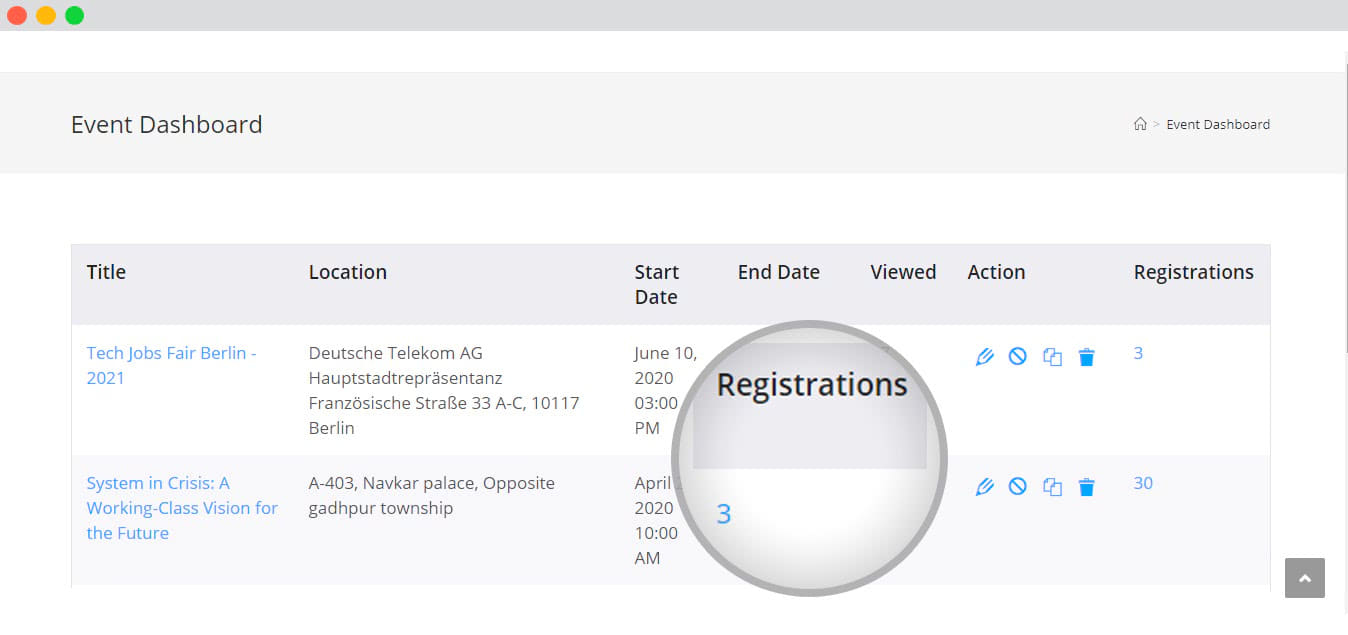 - Your theme will use all the template files from the “/wp-content/yourtheme/wp-event-manager-registrations/” directory instead of the plugin’s template file (/wp-content/plugins/wp-event-manager-registrations/).