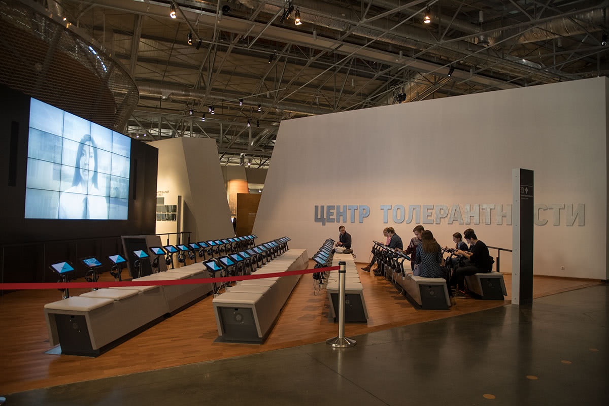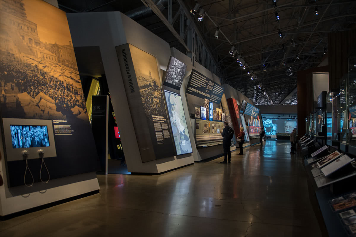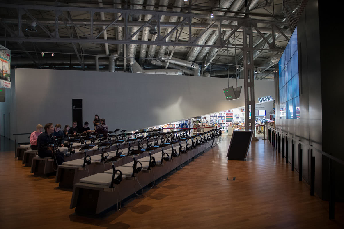Пространство восстановленного Бахметьевского гаража действительно поражает размерами: площадь одной только постоянной экспозиции – 4,5 тысячи квадратных метров. А вместе с Центром толерантности, 4D-кинотеатром, Центром авангарда, библиотеками, детскими студиями и исследовательским центром, крупнейшая в Европе крытая выставочная площадка занимает 8500 «квадратов».