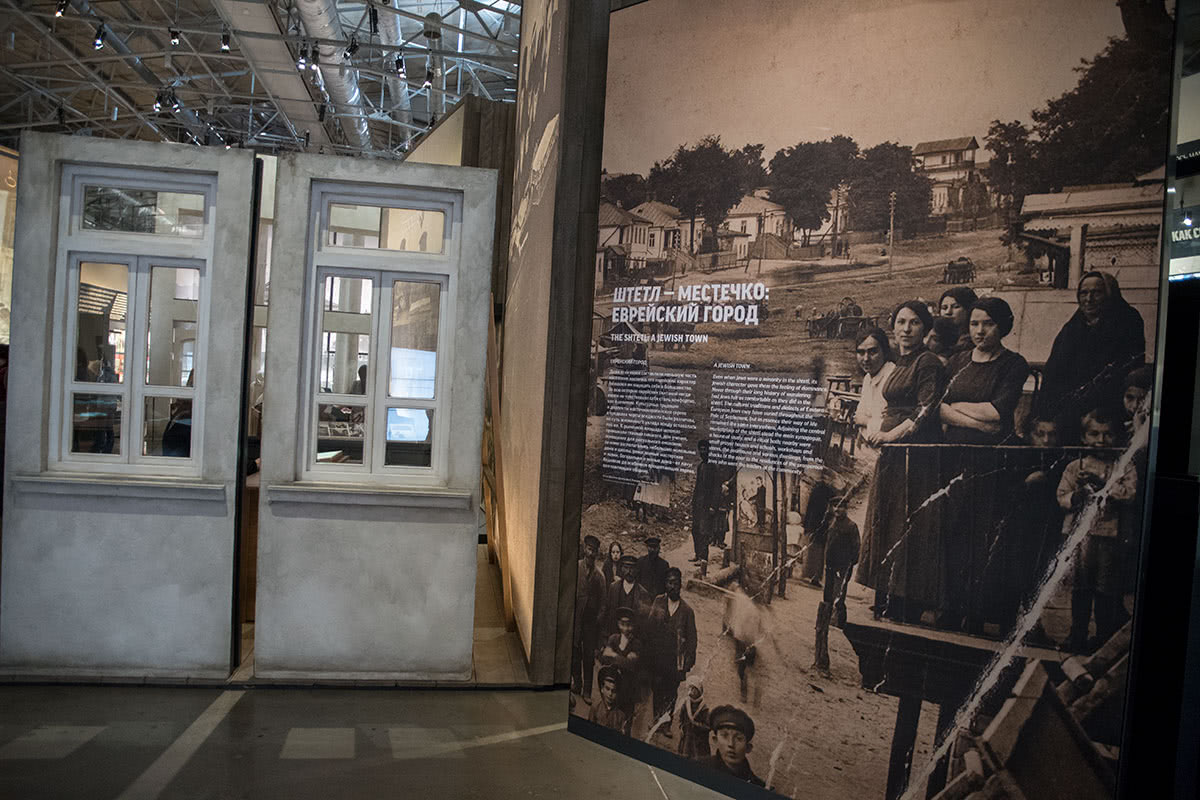 Историческую экспозицию Еврейский музей по понятным причинам сосредоточил на событиях в Российской империи и Советском Союзе. Подчеркиваются ограничения, налагаемые на евреев – запрет на некоторые занятия, религиозные ограничения, возможность селиться только на ограниченной территории (пресловутая черта оседлости). Обосновывалось это разницей веры, однако подспудно власти боялись конкуренции для русских со стороны предприимчивой и, прямо говоря, умной нации.