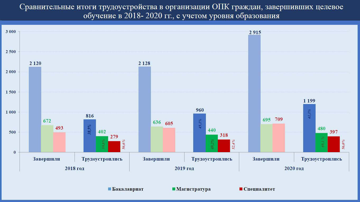 Из доклада заместителя руководителя Федерального кадрового центра ОПК Сергея Карлова следует, что в период с 2017 по 2020 год потребности предприятий иногда в 3-4 раза превышают количество студентов, поступивших на целевое обучение. Скажем, по Севмашу цифры такие: требуется 169 специалистов, поступили 79 молодых людей. Более того, из специалистов, закончивших целевое обучение, доходит до предприятий меньше половины (около 40 процентов).