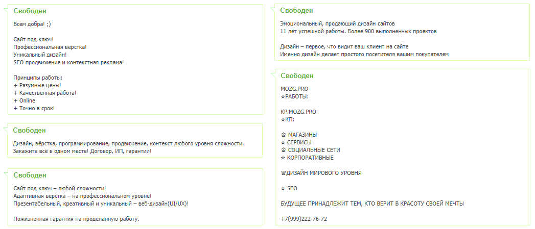 Руководство платит сотруднику зарплату и понимает, сколько стоит его работа за месяц. Но работа фрилансера – это совсем другое, и заказчик должен сразу понимать цену. Поэтому чем лучше вы опишете свои услуги и чем конкретнее будет указана цена за них, тем больше вероятности, что вы получите заказ.