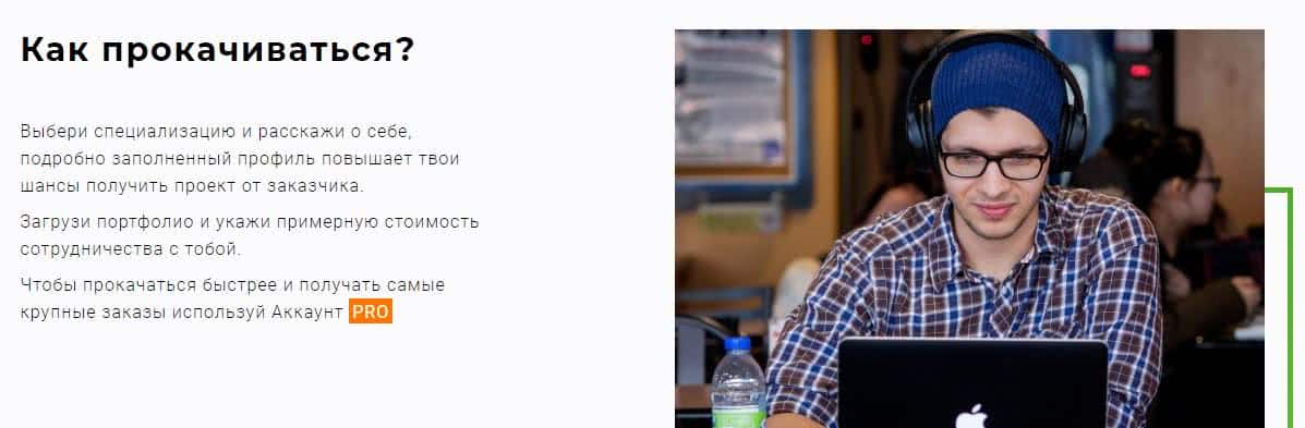 - покупка аккаунта PRO открывает просто безграничные возможности на сервисе, заказы находить проще, рейтинг растет быстрее;