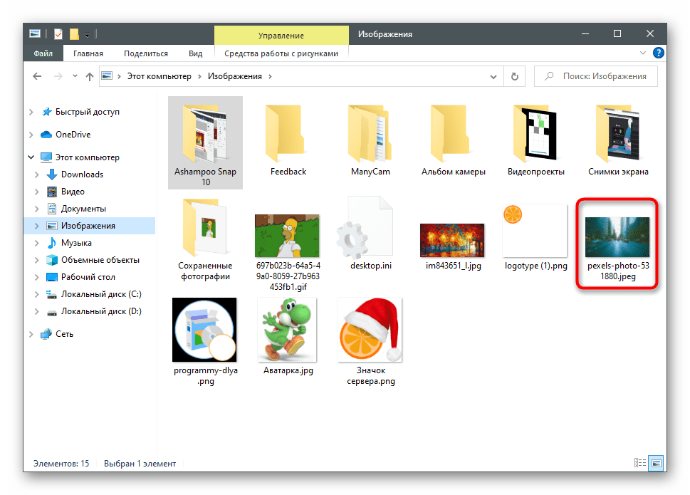 Через «Проводник» найдите вторую фотографию, выделите ее и скопируйте при помощи стандартного сочетания клавиш Ctrl + C.