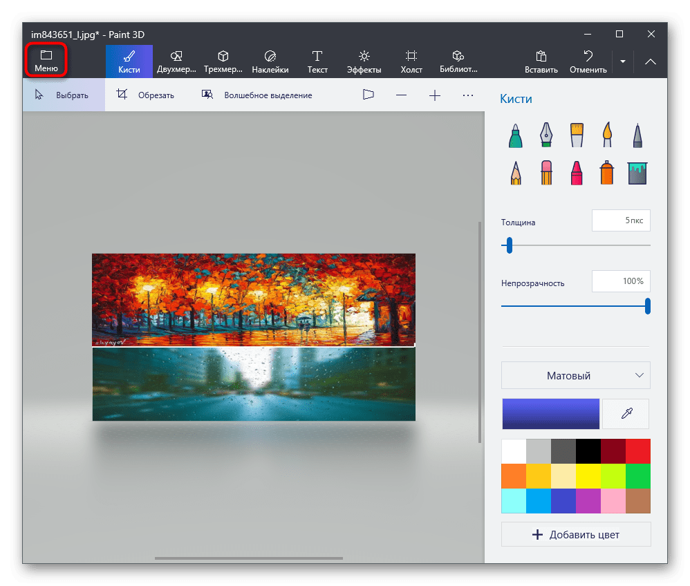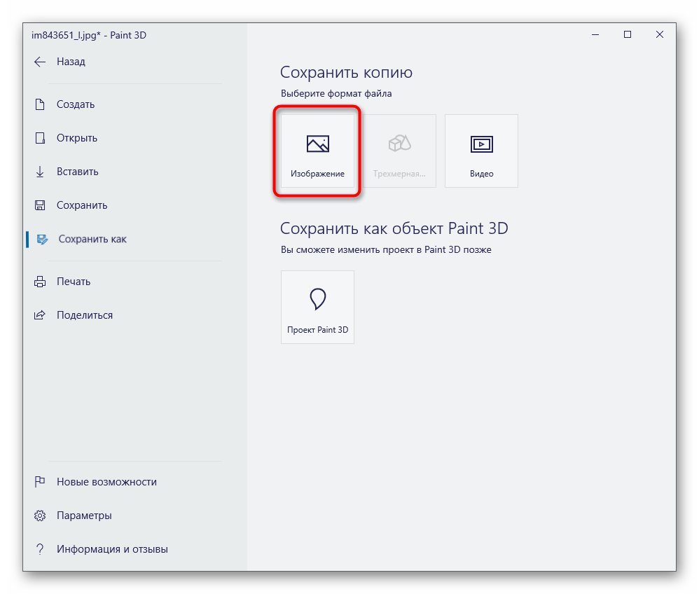 Если ни один из предыдущих методов вам не подходит по причине того, что нужно скачивать дополнительное ПО, а делать это ради выполнения простой задачи не хочется, воспользуйтесь Paint 3D — программой, которая встроена в Windows 10 и предоставляет основные инструменты для работы как с трехмерной, так и 2D-графикой.