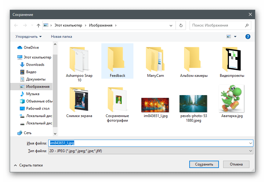 В окне «Сохранение изображения» выберите для него путь и укажите формат, в котором хотите его сохранить.