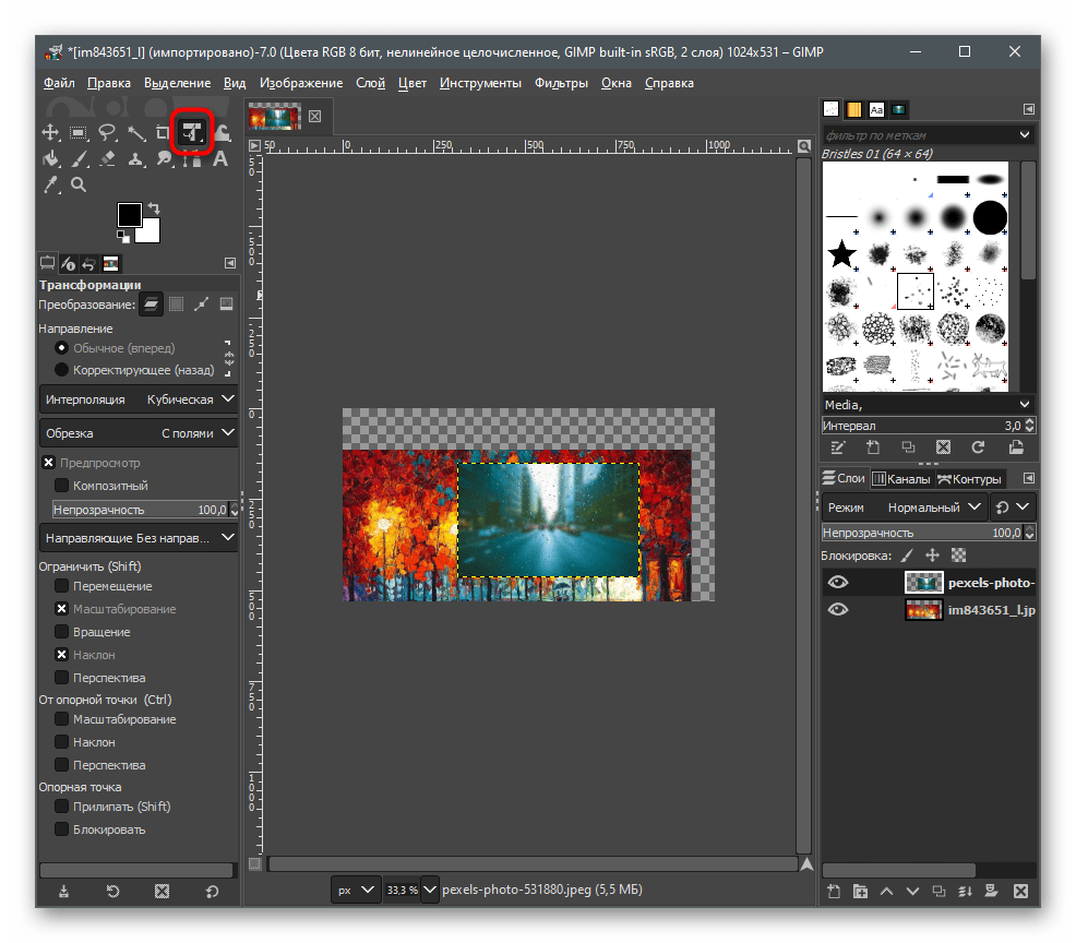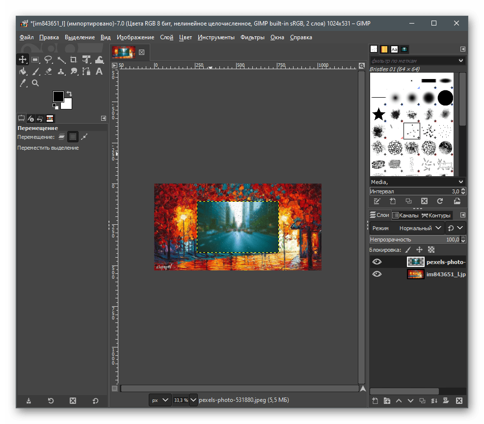 В качестве альтернативы платному Фотошопу рассмотрим GIMP — бесплатный графический редактор с примерно таким же набором функций. Принцип соединения не сильно отличается от того, как это делается в Adobe Photoshop, но в GIMP немного другие действия для открытия нескольких файлов и их редактирования.