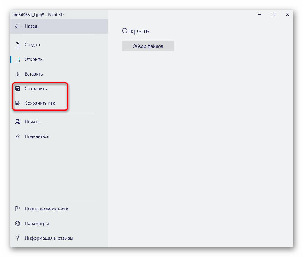 Активируйте пункт «Сохранить» или «Сохранить как».