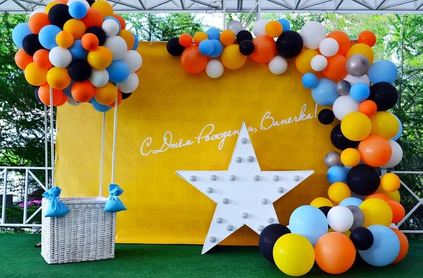фотозона, предназначенная для дня рождения, обычно цветная, с замысловатым декором;