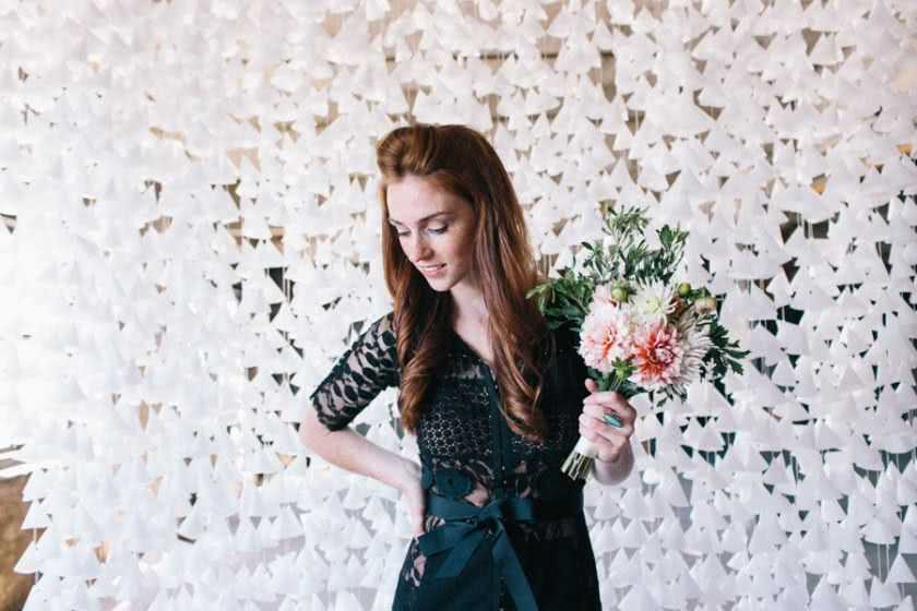 При создании фотозоны на свадьбу своими руками для элементов декора можно остановить выбор на белоснежных колокольчиках. Они делаются нетрудно и недолго, а композиция из них выглядит воздушной, лёгкой и является экономически выгодной.