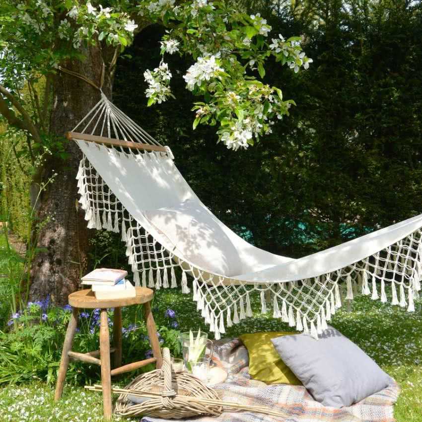 Гамак, связанный или сплетённый из ниток, может стать не только уютным местом для отдыха, но и прекрасным украшением интерьера или ландшафтного дизайна. Все гости, увидевшие такое творческое сооружение, будут в восторге и надолго запомнят его.