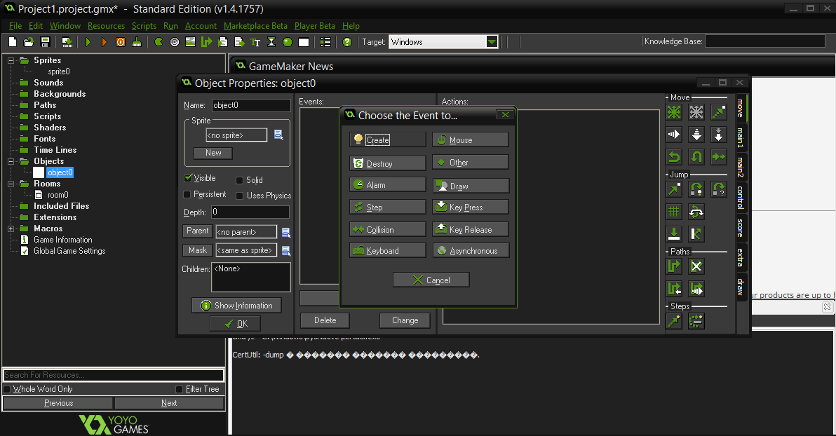 Если вы хотите попробовать самостоятельно, зайдите на сайт http://www.yoyogames.com/studio/download и приступайте!
